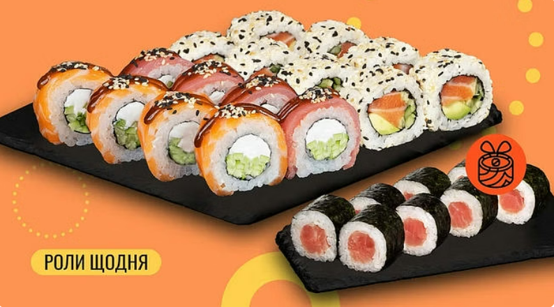 - Багатий асортимент – від класичних ролів до авторських сетів;